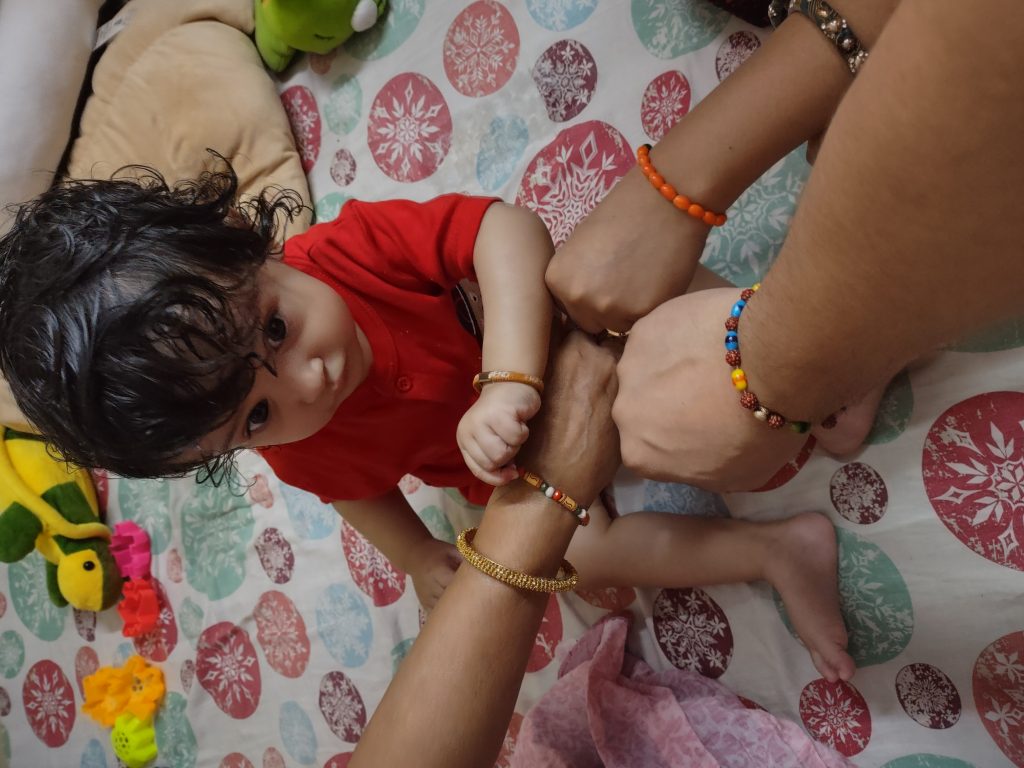Everyone in the family including my mom, dad, nani ma, and myself wore a friendship band on the occasion.